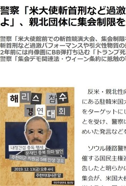 なにやら物騒だが、いったいどんな集会なのか――。朝鮮日報(2019年12月11日付)「韓国の親北団体、あす『米大使斬首競演大会』」が、こう伝えている。