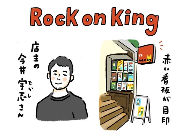 すずらん通りの一角にある小さな藤本ビル。通りに面した赤い看板を目印に、細い階段をのぼる。壁中に貼られたロックミュージシャンのポスターに導かれるように3階に進むと、「ロック オン キング 」にたどり着く。
