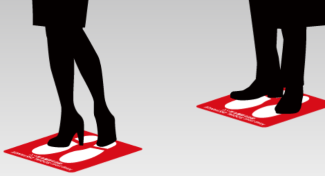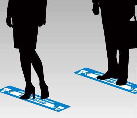 ●「距離」保ち、並ぶ位置を教えるステッカー
