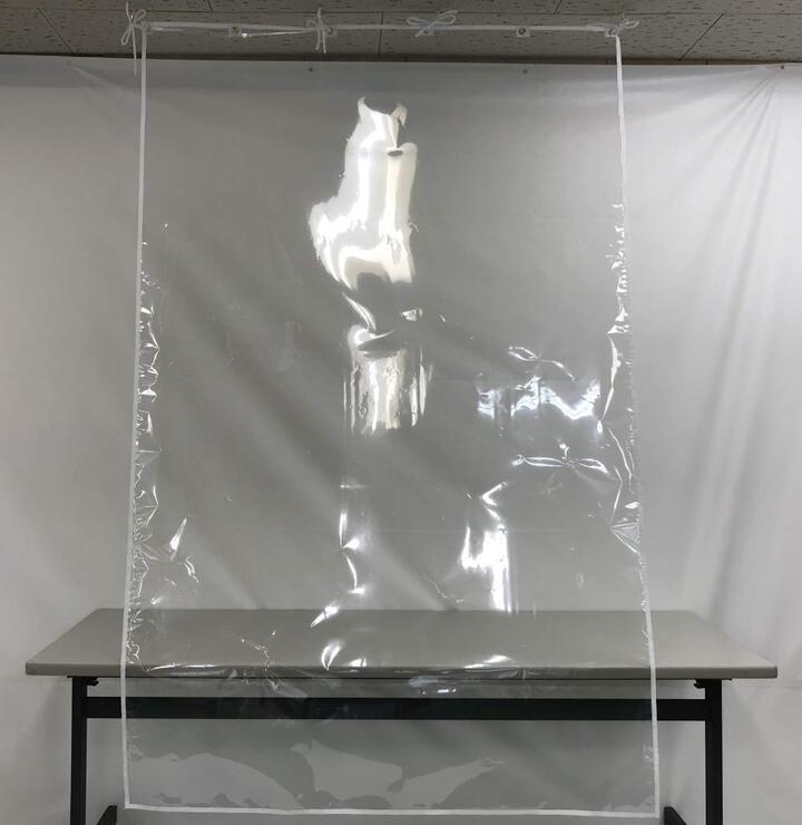 ●ビニール生地不足に対応した「飛沫防止フィルムカーテン」
