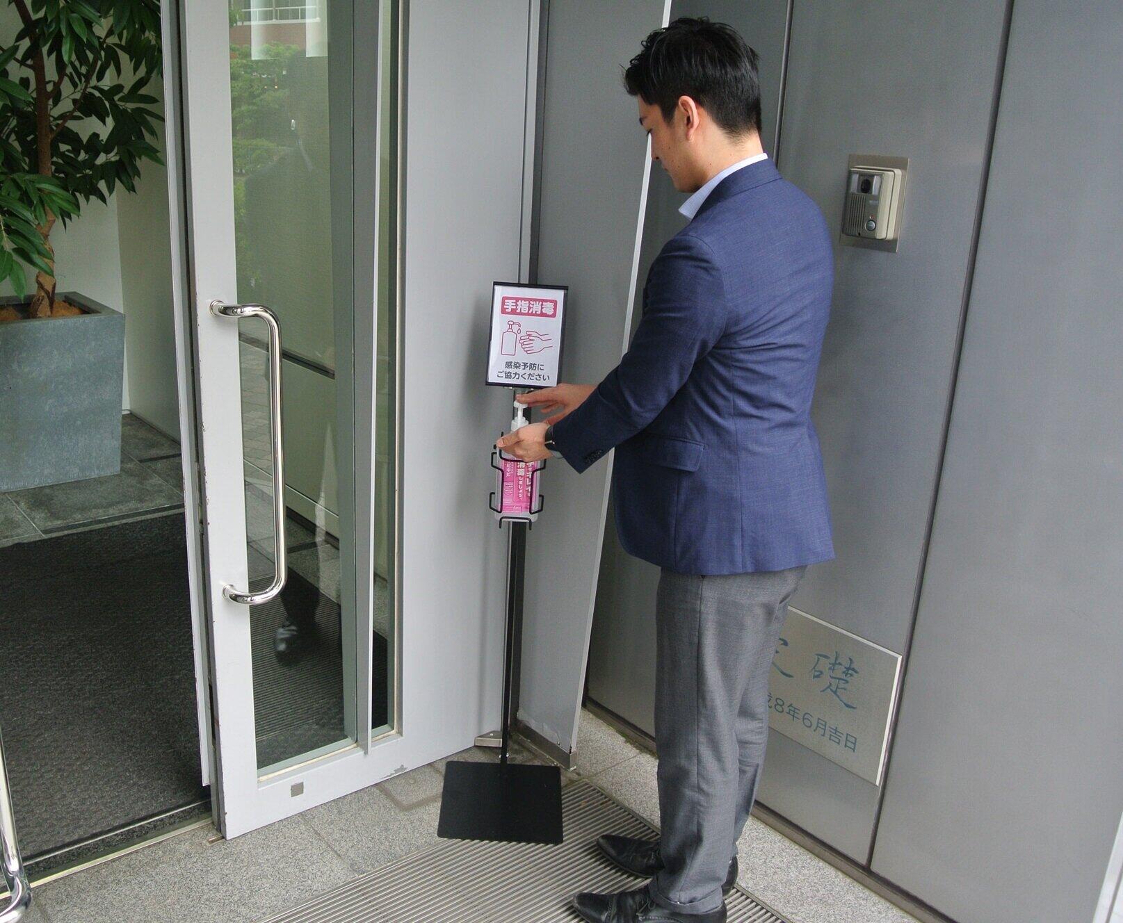小売・量販店向けに、さまざまな用具の企画・開発・販売を手がける日研工業株式会社(東京都豊島区)は、盗難防止機能を備えたアルコール消毒液専用ボトルスタンドを開発。6月2日に販売を開始した。
