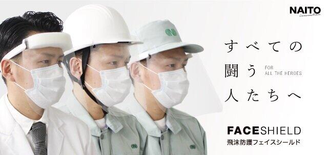 さまざまな建設現場で業務が再開。しかし、いずれの場所でも感染リスクを避けながらの作業になる。NAITOではこれまで生産してきた医療従事者向けフェイスシールドを、ヘルメットや帽子などの着用が義務付けられている建設現場の従事者用に改良。頭部保護具の着用時でも装着できる製品をそろえた。