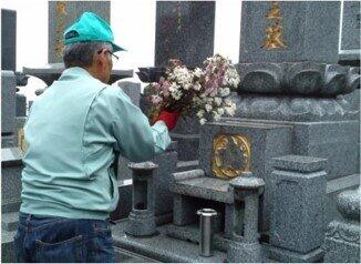 「お墓参り代行」は、平均8000円~1万2000円の価格で、水や花、線香を供えて合掌礼拝したり、周辺のすみずみにわたり草取りや掃除を行ったり、作業前後の写真を送信いたりするサービス。