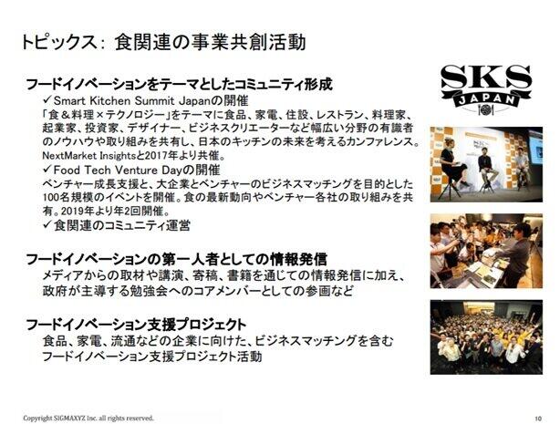 このような市場において同社は、食・料理領域における新規事業の創造や立ち上げ支援を行っているほか、2017年より「食&料理×テクノロジー」をテーマとして「Smart Kitchen Summit(スマートキッチンサミット)」を開催している。さらに、フードテックに関する政府主導の勉強会であり、今年4月から定期的に開催されている「農林水産省フードテック研究会」には、コアメンバーとして参画している。