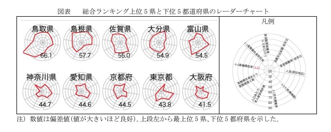 こうした分析による総合点が高いほど、新型コロナの対応がしっかりした自治体ということになる。その結果、総合点ランキングのベスト5は、1位鳥取県、2位島根県、3位佐賀県、4位大分県、5位富山県となった。