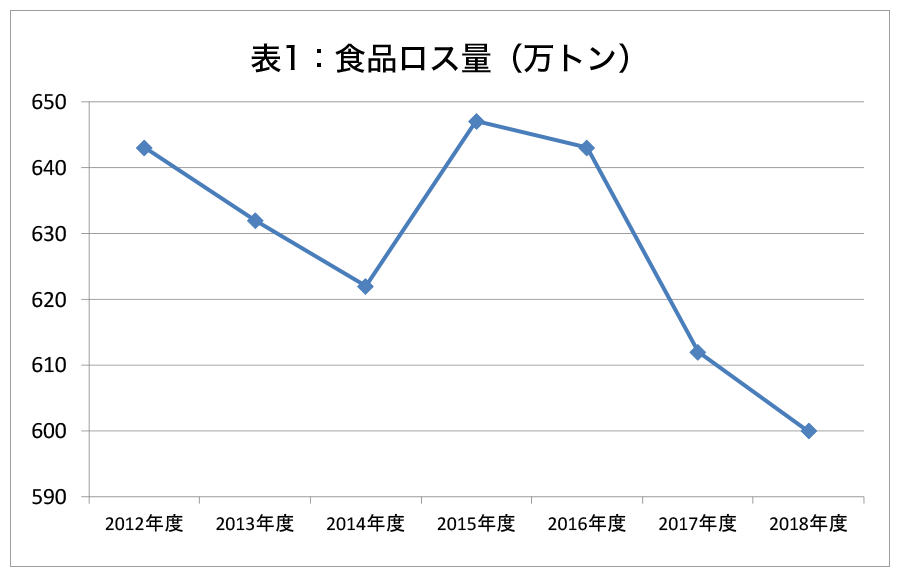 確かに食品ロスの量は、推計を始めた12年度の643万トンから減少した。しかし、7年間で43万トン(年度平均で6万トン程度)の削減でしかなく、大きく削減できているとは言い難い状況だ=表1参照。