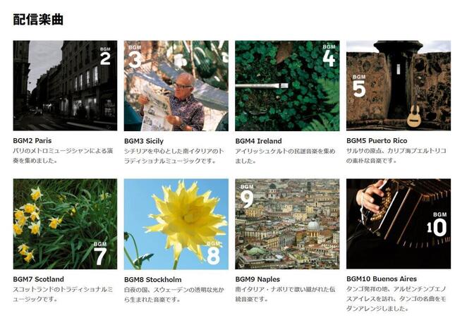 現在、楽曲はBGM2から25までの計327曲を配信している。