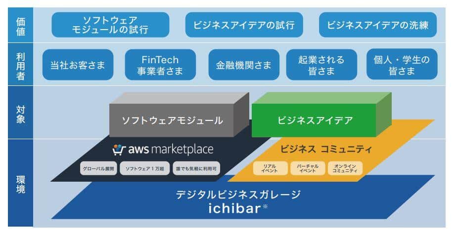 「かんたん組込型金融サービス」は、アプリ開発などの事業会社に提供することで、サービスが社会に根差していくことを目指す。8月下旬には、スタートアップ企業やデジタルビジネスのアイデアを持った学生などを対象に、組込型金融を用いた新たなデジタルサービスを提供する仕組み「デジタルビジネスガレージ ichibar」を開始する予定だ。