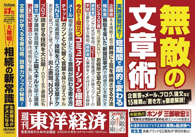 8月2日発売の「週刊東洋経済」(2021年8月7・14日号)は、「無敵の文章術」を特集。企画書やメール、ブログ、論文など、15種類の「書き方」を徹底解説している。