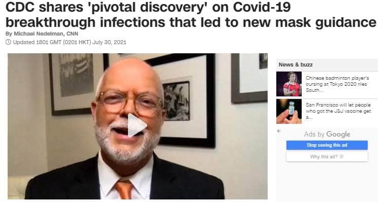 CNN(7月30日付)「CDC shares 'pivotal discovery' on Covid-19 breakthrough infections that led to new mask guidance」(CDCは、新型コロナのブレークスルー感染に関する〈極めて重要な発見〉が新しいマスク着用ガイダンスを生み出したという)が、デルタ株の謎の性質を伝える。