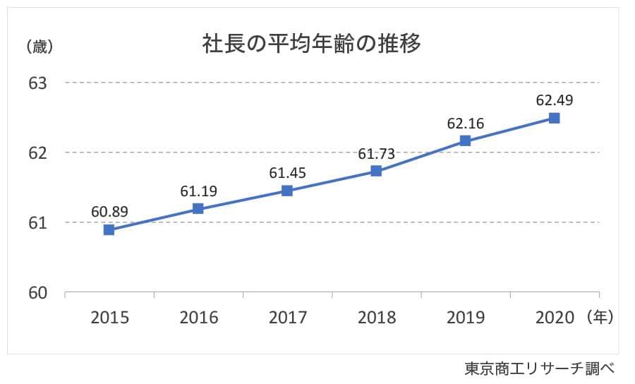 社長の平均年齢は62.49歳、高齢化進む