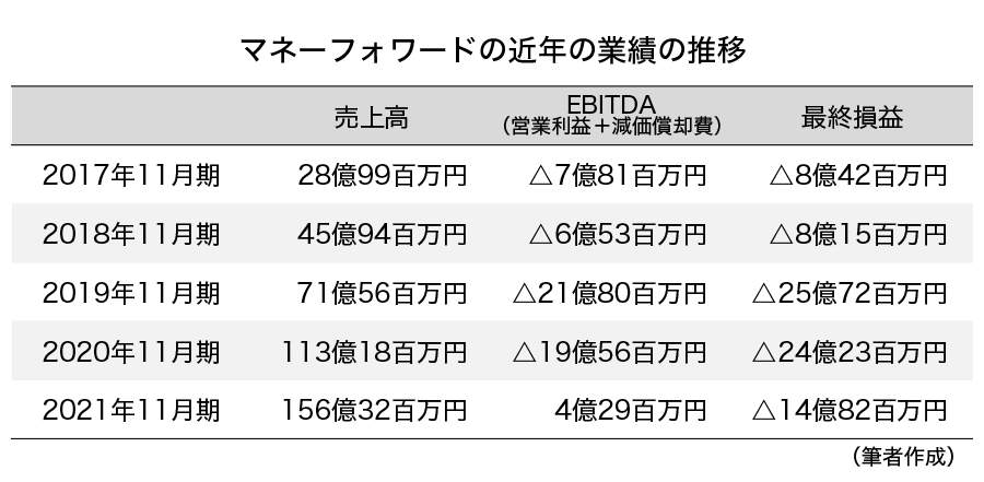 それではまず、マネーフォワードの近年の業績の推移を見てみましょう。