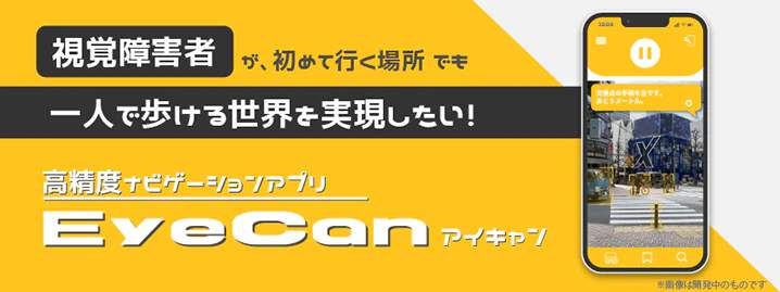 障害物を検知して音声で知らせ、GPSより精度の高い位置情報を用いて目的地まで正確にナビゲートするという「EYECAN」は2022年9月にベータ版を先行リリースし、年内のサービス開始を目指している。