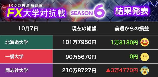 今回はFX大学対抗戦ですが、普段であればご自身のトレードに割くことができる時間や得たい利益などを逆算して、トレードスタイルや運用を設計していくものかと思います。そういったことも真面目にトレードに向き合うのなら、考えてみるのもひとつかもしれませんね。