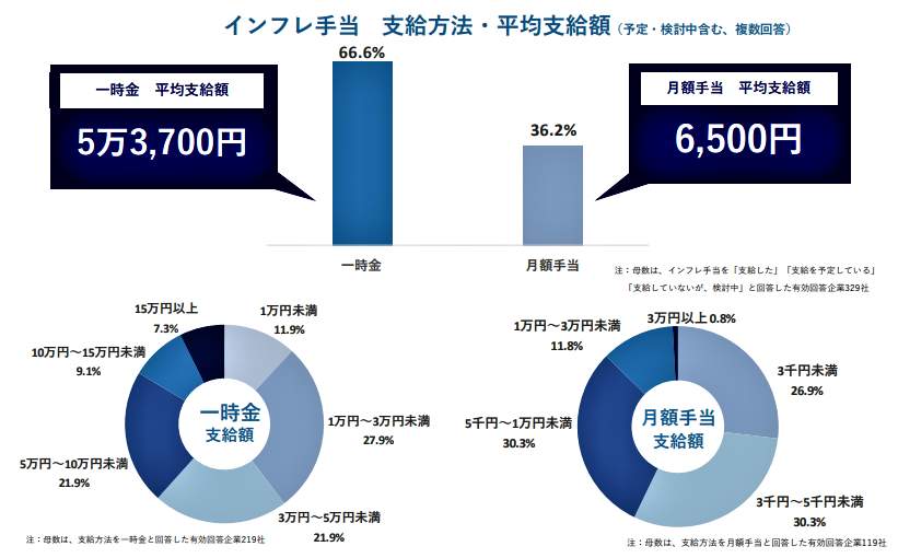 などと、記録的な値上げラッシュが続くなか、実質賃金の減少を補うために支給するところが多かった。また、