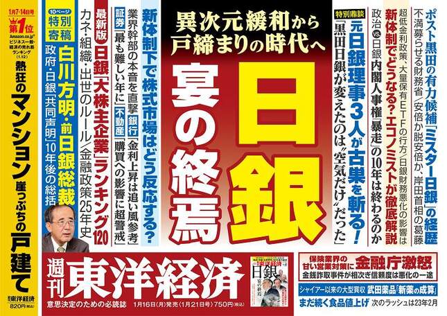 1月16日発売の「週刊東洋経済」(2023年1月21日号)の特集は、「異次元緩和から戸締りの時代へ 日銀 宴の終焉」。