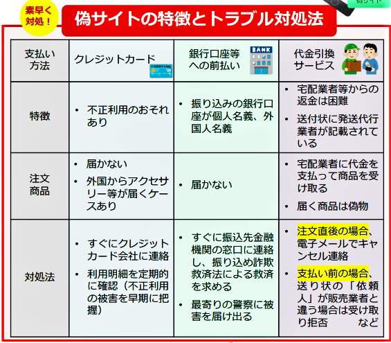 もし偽サイトに注文したことに気が付いたら、どうしたらよいだろうか。対応は支払い方法によって異なり、素早く対処することが大切だ【図表2】。