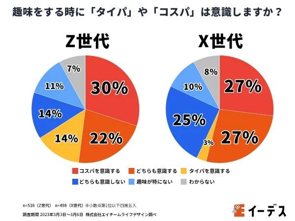 この調査はZ世代に対して2023年3月6日に、X世代に対しては3月3日に調査した。対象は18歳から59歳までの男女。Z世代が518人、X世代は489人をインターネットを通じて調べた。