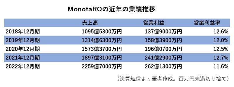 それではまず、MonotaROの近年の業績の推移を見てみましょう。