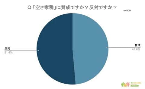 不動産メディア「幸せおうち計画」を運営するAZWAY(東京都豊島区)は、10代から60代以上までの男女500人を対象に、「空き家税に賛成か反対か」などを聞いたアンケートを行い、その結果を2023年5月22日に発表した。