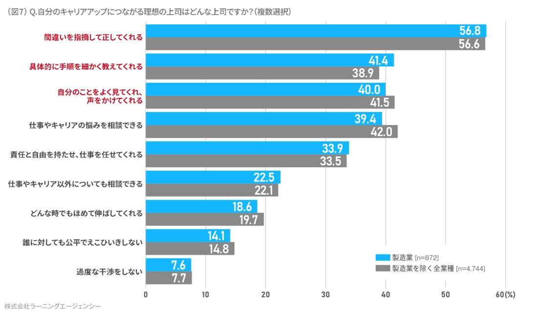 同社ではこうした結果に対して「製造業の新人は失敗体験を通じ、間違いを正し、具体的に手順を細かく教えながら正解へ導いてくれるような上司を理想としていることが明らかとなりました」とコメントしている。
