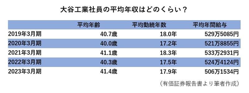 平均年間給与は減少傾向にあり、2023年3月期には506万円にまで下がりました。平均年齢は41.4歳、平均勤続年数は17.9年です。