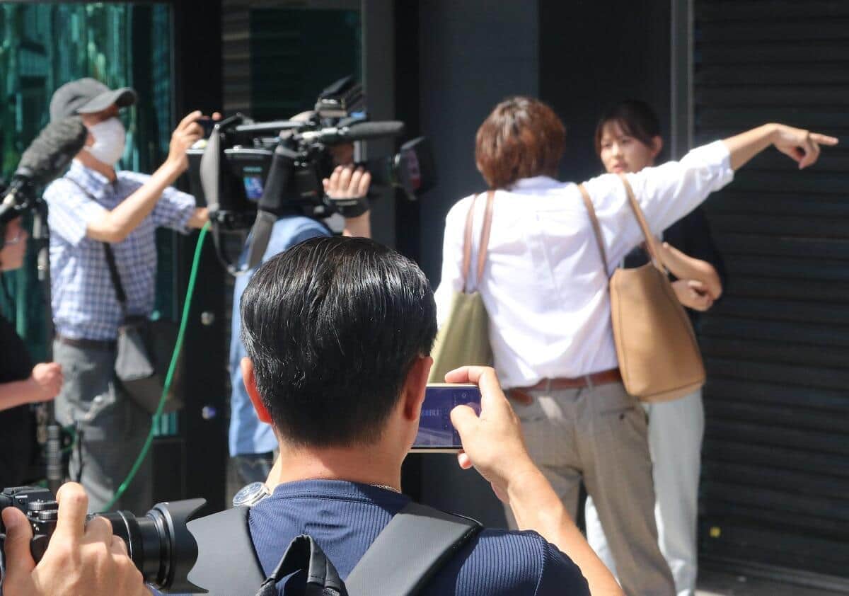 J-CAST会社ウォッチ編集部記者が現場に到着したのは10時前。天気は晴れ。容赦ない残暑の中、通常ならまもなく営業を始める同店前にはおびただしい数のマスコミが陣取っていた。閉ざされたままのシャッターには「臨時閉館のお知らせ」が貼られていた。