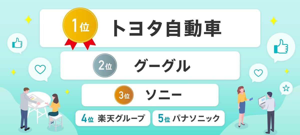 トップ5を見てみると、第5位は「パナソニック」、第4位は「楽天グループ」。続いて、第3位は「ソニー」で安定した人気をキープしている。