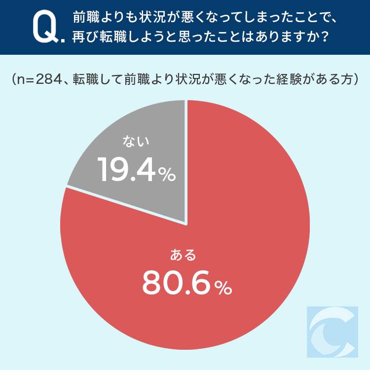 引き続き、「前職よりも状況が悪くなってしまったことで、再び転職しようと思ったことはありますか?」と質問。80.6%の回答者が「ある」と回答、「ない」は19.4%だった。
