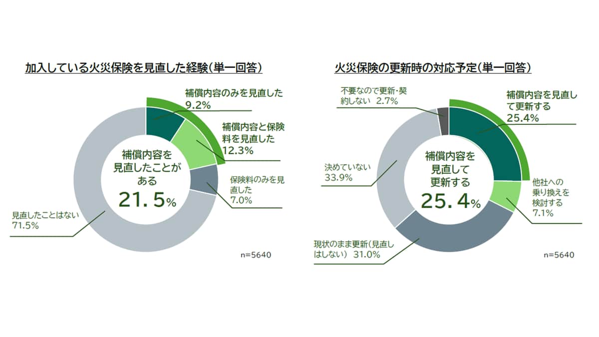 火災保険、半数近くが現状の契約内容で「補償は不十分」...それでも「見直した経験」21.5% 全国調査
