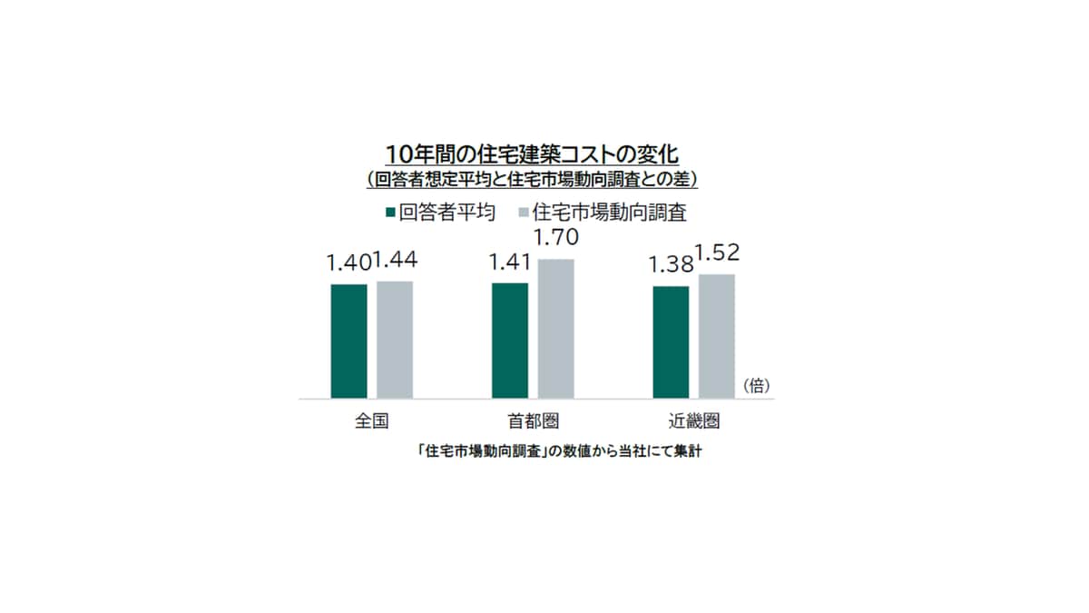 「回答者の想定平均が全国・首都圏(東京都・千葉県・埼玉県・神奈川県)・近畿圏(大阪府・京都府・兵庫県のそれぞれで約1.4倍の増加という結果になりました」