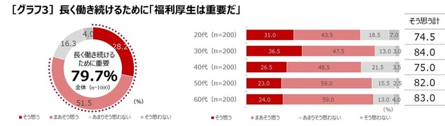 長く働き続けるためには福利厚生が「重要」79.7%