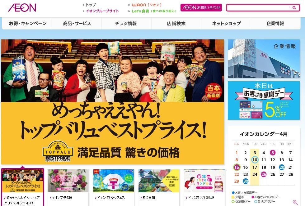 イオンが景品表示法違反(画像はイオンのホームページから)