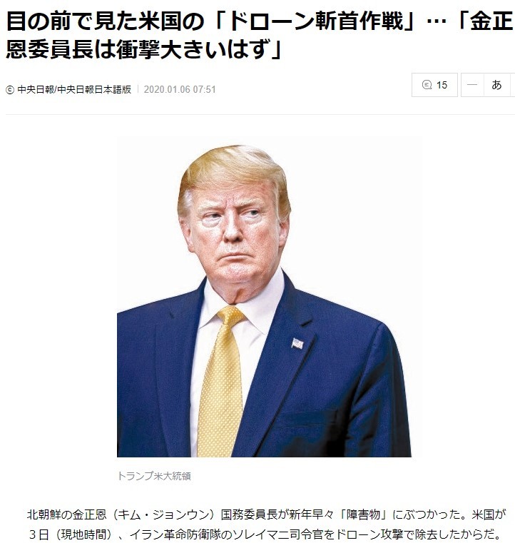 【日韓経済戦争・番外編】米軍「イラン司令官暗殺」にすくみあがった北朝鮮 金委員長は「斬首作戦」怖さに雲隠れか 韓国紙で読み解く