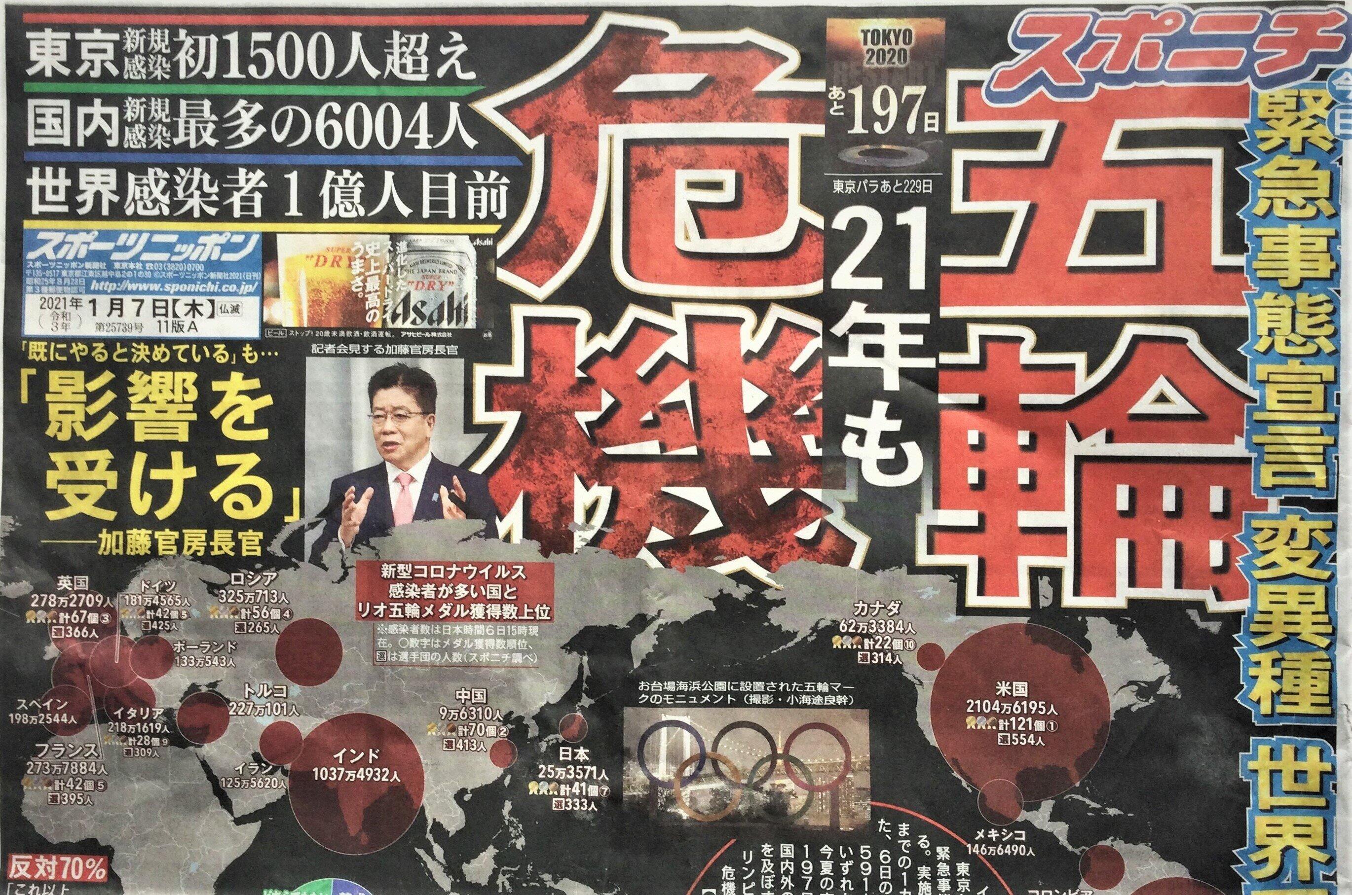「緊急事態宣言」再発令「東京五輪ついにアウト!」とスポーツ紙も見限る ネットでも94%が反対(1)
