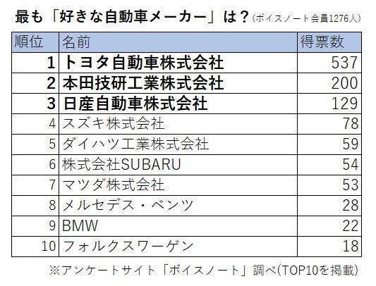 好きな自動車メーカーは? ドライバーが選んだのは、やはり...