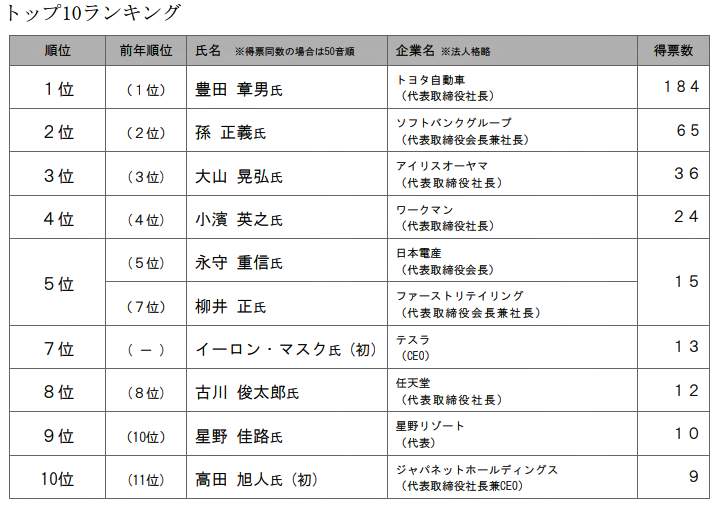 社長が選ぶ「今年の社長ランキング」 豊田章男氏、孫正義氏に続く「地方発ジャパニーズ・ドリーム」の二人とは?