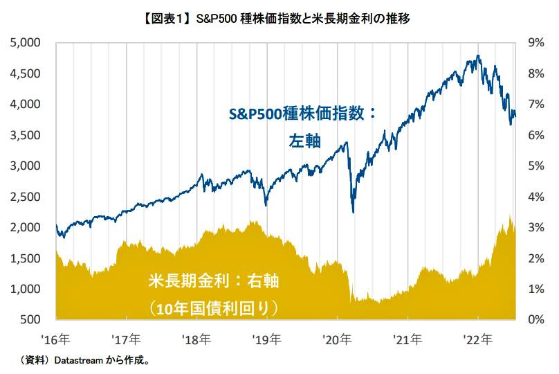 (図表1)S&P500種株価指数と米長期金利の推移(ニッセイ基礎研究所の作成)