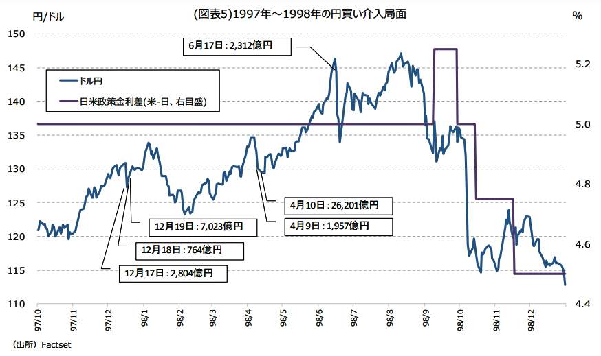 (図表2)1997年~1998年の円買い介入局面(明治安田総合研究所の作成)