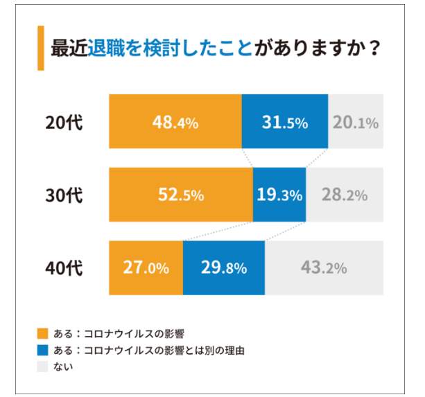 「最近、退職を検討した」営業職、20代ではなんと8割! コロナ禍が理由という人、女性のほうが多い結果に