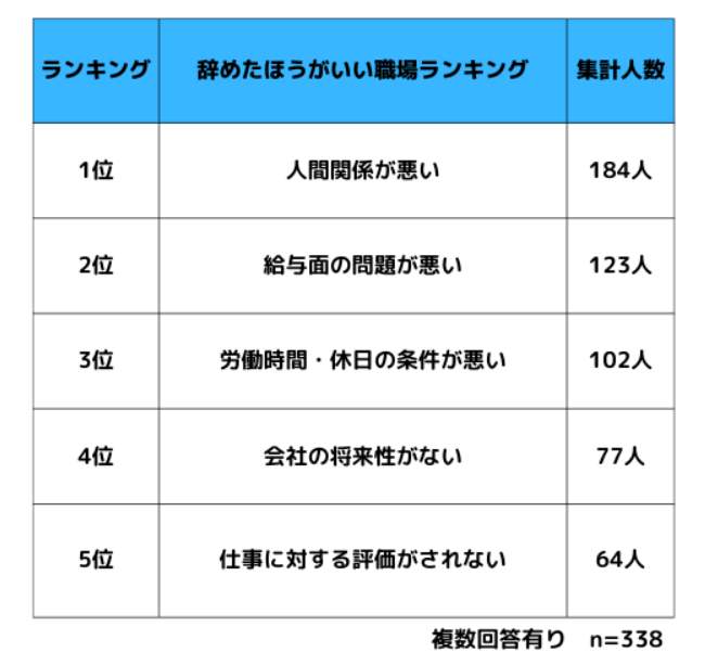 「辞めたほうがいい」のは、こんな職場! ランキングトップ3は労働条件、給与、そして...?