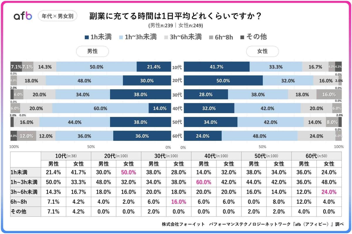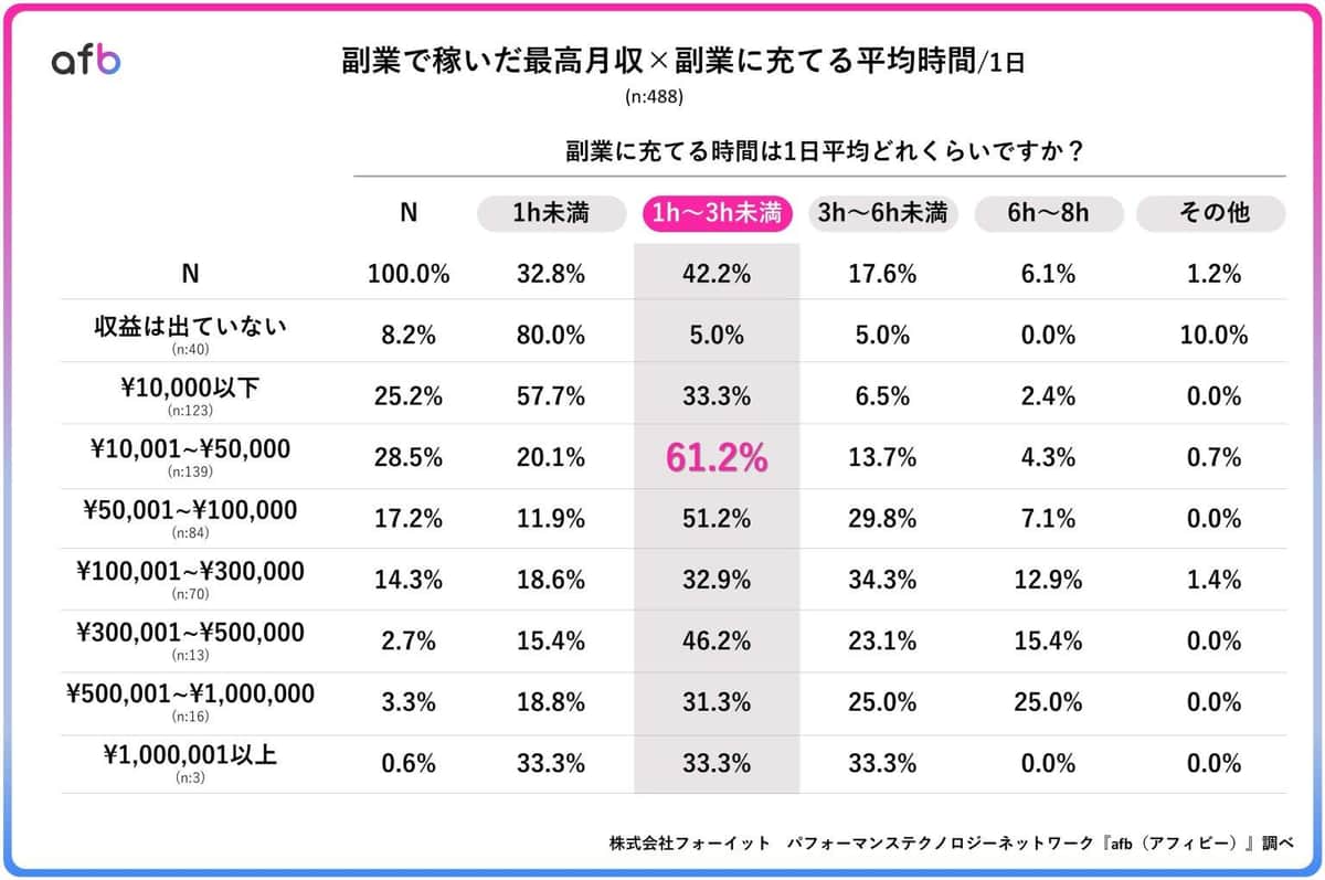 副業には、どのくらい時間を充てている? 稼いでいる額のボリュームゾーンは?