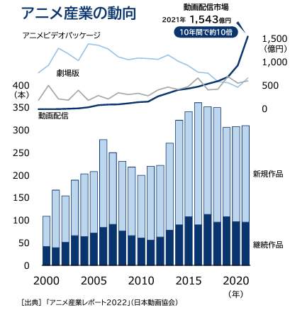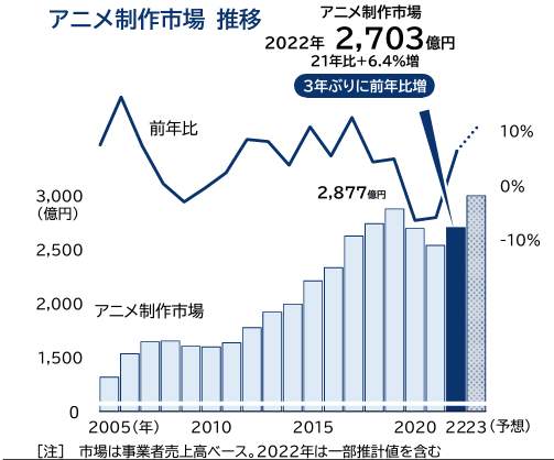 アニメ制作業界の市場規模、22年は2703億円で前年比6.4%プラス...23年は3000億円突破の可能性も 「稼ぎ方」多様に...収益力の改善はさらに進むか?