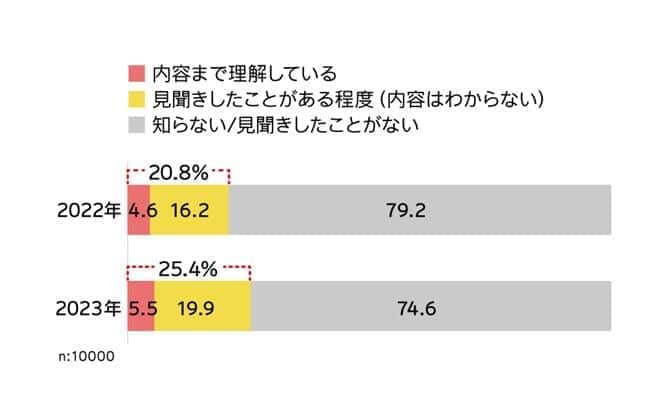 図1 ウェルビーイングを「知っている」人は25.4%だった(電通ヘルスケアチーム調べ)