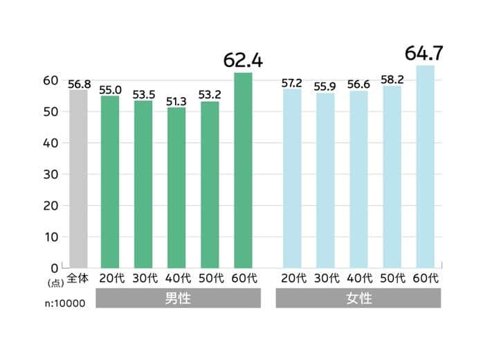 図2 自分の「幸せ度」を100点満点で採点したら?(電通ヘルスケアチーム調べ)