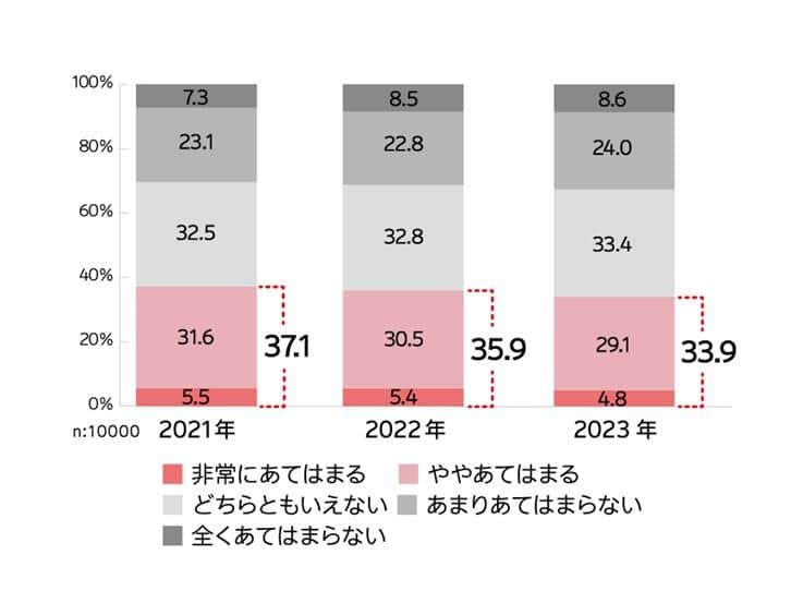 図3 「常に健康を意識した生活をしている」人は年々減っている……(電通ヘルスケアチーム調べ)