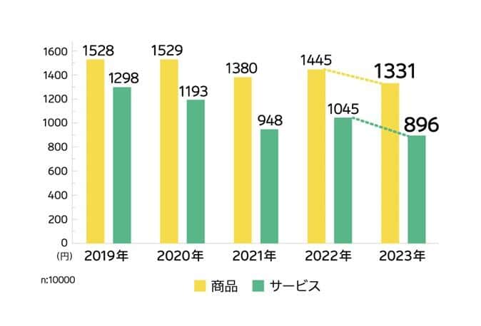 図4 健康のためのお金、商品・サービスともに過去5年間で最少(電通ヘルスケアチーム調べ)