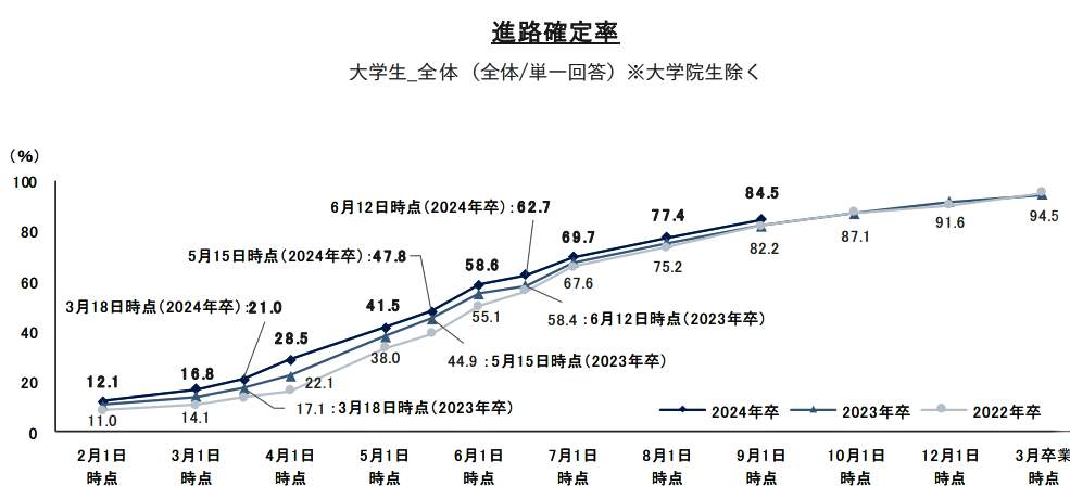 【2024年卒就活生】ゴール直前、9月1日時点内定率9割超、進路確定率8割超!「内定なしの学生頑張れ、採用活動続ける企業まだ多い!」