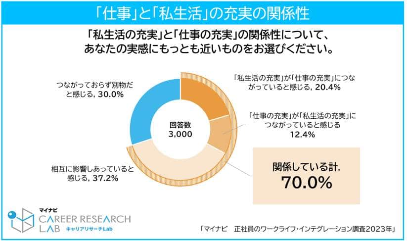 「私生活の充実」は「仕事の充実」につながる20.4%、「仕事の充実」が「私生活の充実」につながる12.4% マイナビ調査