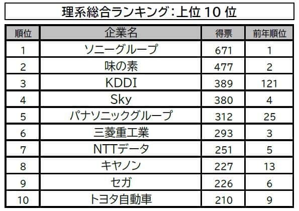 【2025年卒就活生】大学生就職企業人気ランキング【理系編】 マイナビ調査